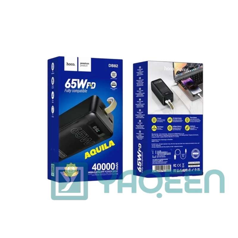 Get The Hoco DB82 40,000mAh 65W Power Bank in Bangladesh at yaqeenstore.store Enjoy top quality and unbeatable prices with the best customer service in Bangladesh